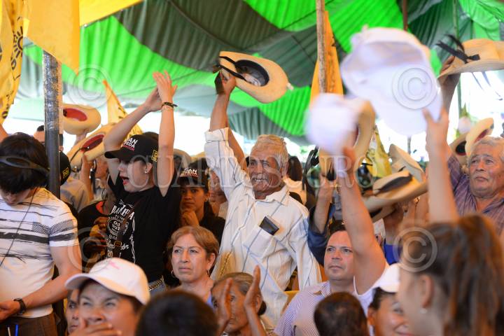 AMATEPEC, ESTADO DE MÉXICO, 01MAYO2017.- El candidato a la gubernatura del del Estado de México Juan Zepeda, acompañado del diputado federal Jesús Zambrano y el líder estatal del partido del Sol Azteca, Omar Ortega, acudió a la cabecera municipal de Amatepec en donde hablo de crear mayores aportunidades para los habitantes de la zona caliente. FOTO: ARTEMIO GUERRA BAZ /CUARTOSCURO.COM
