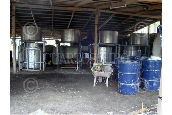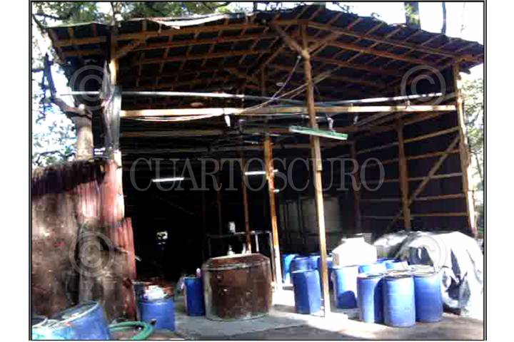 TAMAZULA, DURANGO, 07AGOSTO2009.- Elementos del ejercito mexicano encontraron un narcolaboratorio donde se fabricaban droga del tipo ice y cristal ubicado en 240 hectáreas de terreno en la comunidad Las Trancas, perteneciente a este muncipio. En el lugar se encontraron ambas drogas, 164 tambos de 200 litros cada uno, con capacidad para almacenar 32,800 litros de productos químicos, así como 18 vehículos, entre ellos un cargador frontal y varias cuatrimotos, y tambien vestuario tipo militar. Dentro del complejo se encontraron 22 instalaciones diversas para el procesamiento de drogas sintéticas y empaquetamiento de mariguana, las cuales comprenden dormitorios, cocinas, casas de descanso, bodegas para almacenaje y laboratorios, incluyendo una cabaña de lujo para el Jefe del Complejo. FOTO: SEDENA/CUARTOSCURO.COM