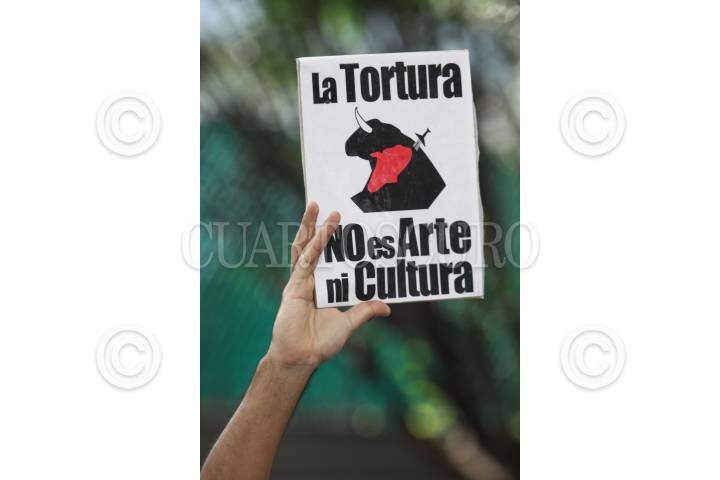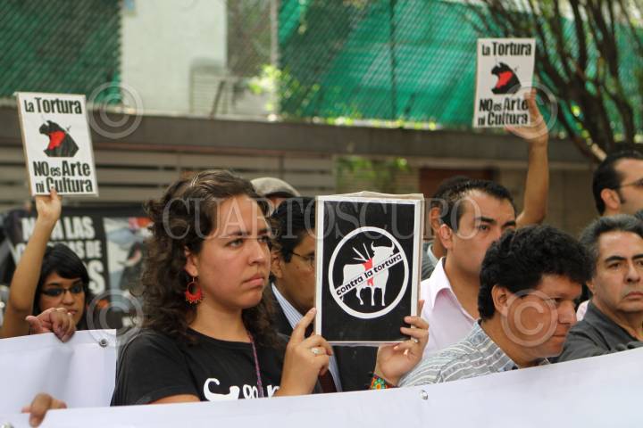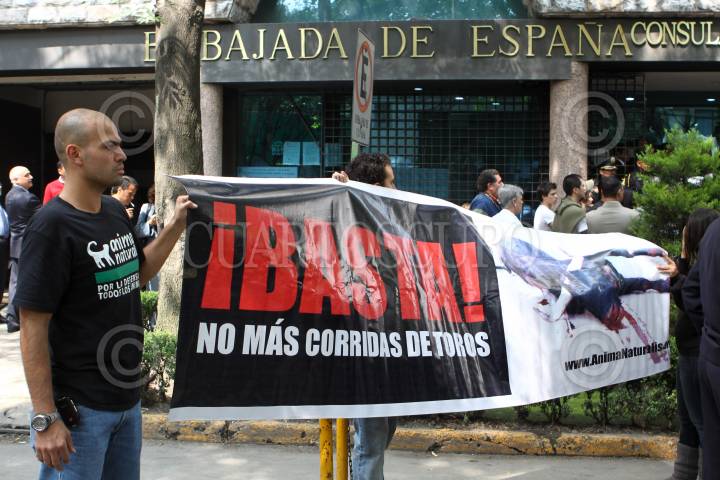 MÉXICO, D.F., 09SEPTIEMBRE2010.- Integrantes de la organización Anima Naturalis protestaron en contra de las corridas de toros y a su vez integrantes del Consejo Nacional Taurino de Aficionados y Peña Taurina de México se manifestaron contra la Ley Antitaurina de Cataluña y a favor de las corridas de toros ; ambas protestas se realizaron a las afueras de la embajada de España. FOTO: RODOLFO ANGULO/CUARTOSCURO.COM