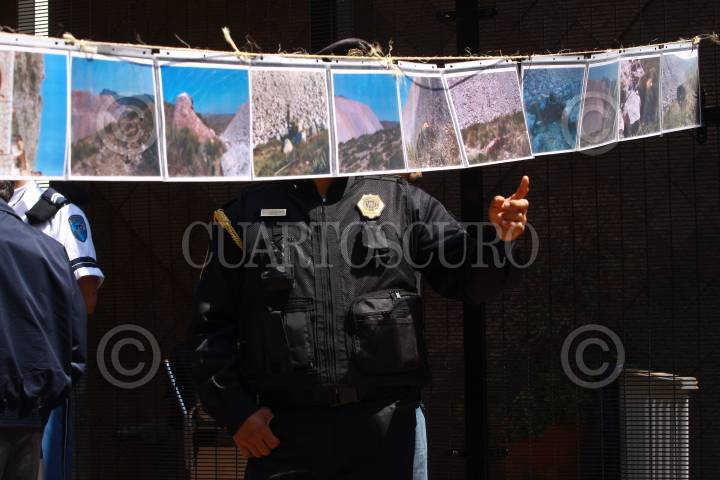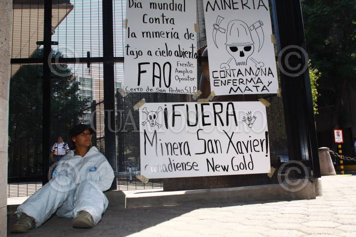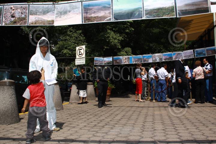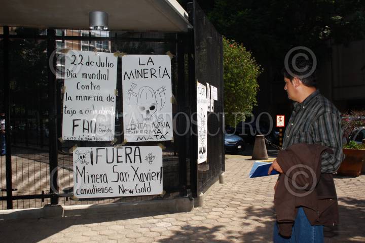 MÉXICO, D.F., 21JULIO2009.- Un grupo personas realizaron una protesta en contra de la Minera de San Xavier, la protesta se realizo a las afueras de la embajada canadiense donde colgaron Imágenes sobre los impactos ambientales de la transnacional canadiense. FOTO: SÁSHENKA GUTIERREZ/CUARTOSCURO.COMM