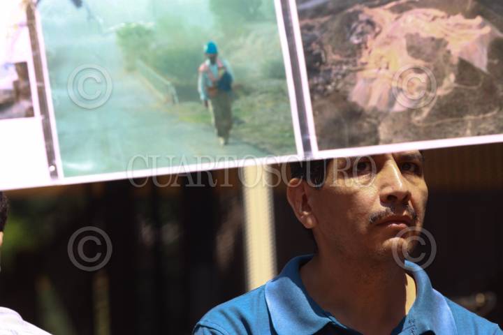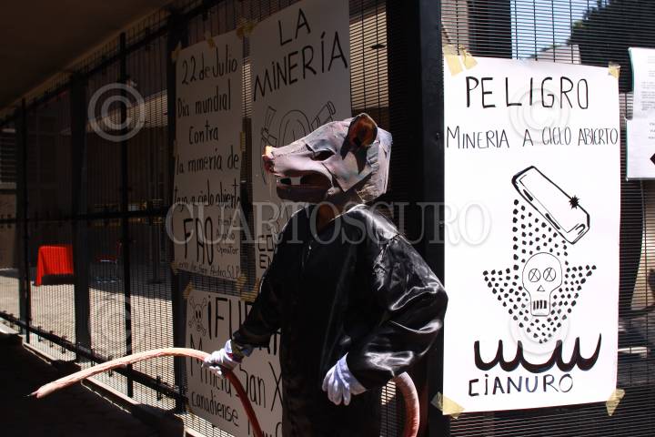 MÉXICO, D.F., 21JULIO2009.- Un grupo personas realizaron una protesta en contra de la Minera de San Xavier, la protesta se realizo a las afueras de la embajada canadiense donde colgaron Imágenes sobre los impactos ambientales de la transnacional canadiense. FOTO: SÁSHENKA GUTIERREZ/CUARTOSCURO.COM