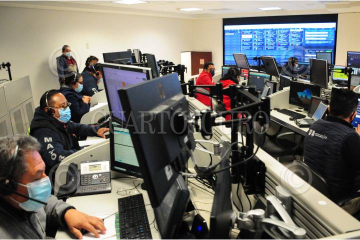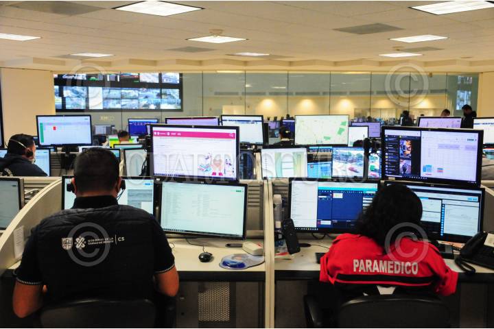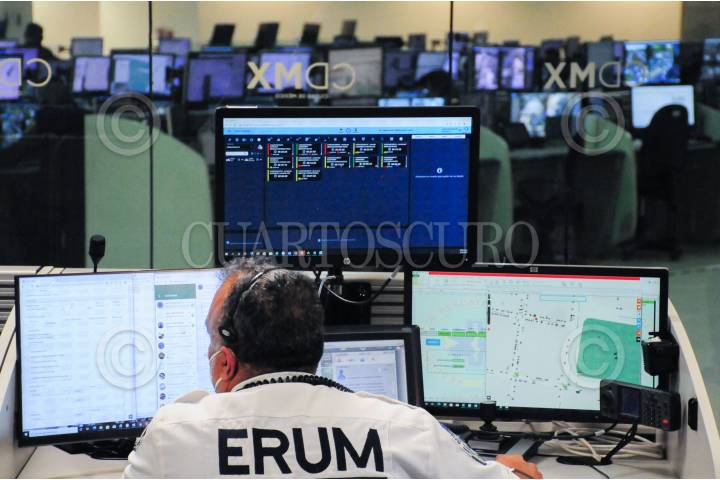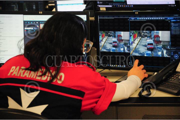 Un elemento del ERUM labora desde el C5 para el envío de ambulancias.