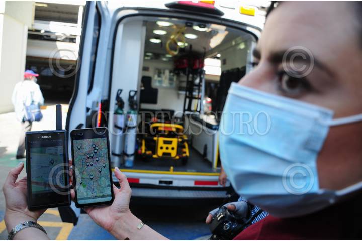 La Dra. Estrella Albarrán, coordinadora del Centro Regulador de Urgencias Médicas (CRUM) muestra los dispositivos con los que los paramédicos comenzarán a trabajar apartir de ahora en las ambulancias.