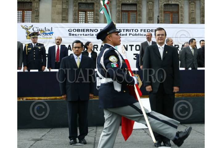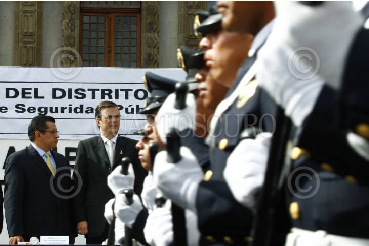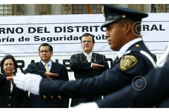MÉXICO, D.F. 100CTUBRE2007.- El jefe de gobierno capitalino, Marcelo Ebrard Casaubón y el secretario de seguridad pública, Joel Ortega, inauguraron la unidad de protección ciudadana de Mixcalco, para resguardar las calles de vendedores ambulantes. Elementos de la SSP durante el evento. FOTO: PAOLA HIDALGO/CUARTOSCURO.COM