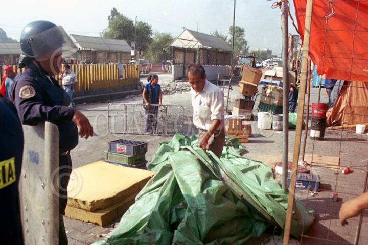MEXICO D.F. 14JUNIO2005.- Elementos de la Secretaria de Seguridad Publica (SSP),desalojaron a los vendedores ambulantes que se encuentran en el paradero del metro Indios Verdes. FOTO: Oscar López/CUARTOSCURO.COM