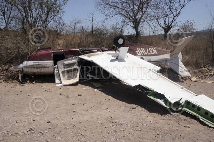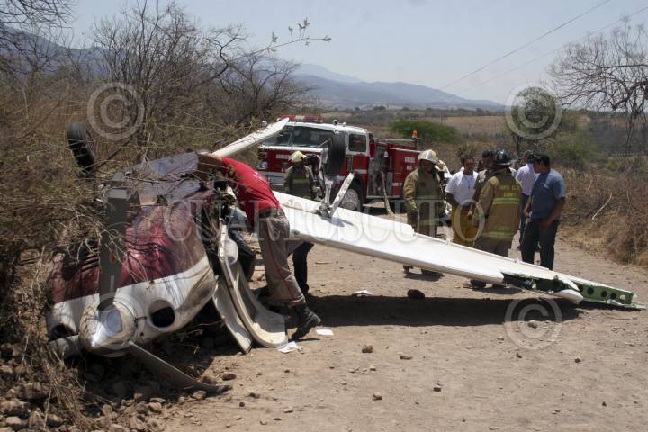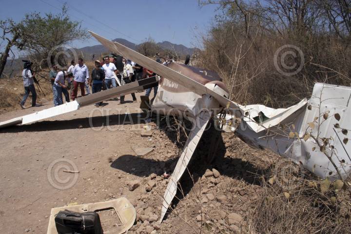 AMECA, JALISCO, 30MAYO2013.- Esta mañana alrededor de las 8:30 horas una avioneta que salió de Puerto Vallarta y que tenia como destino la ciudad de Guadalajara, se desplomó en el poblado de Laguinillas del municipio de Ameca, el piloto falleció y otros cuatro tripulantes resultaron heridos. La aeronave siniestrada es una Piper Saratoga 2002, con la placa de circulación N371HP y tiene un costo promedio de 300 mil dólares. De acuerdo con el dueño de la avioneta, hace 40 días recibió mantenimiento general, por el cual pagó la cantidad de 30 mil dólares, a una empresa norteamericana. FOTO: FERNANDO CARRANZA GARCÍA /CUARTOSCURO.COM