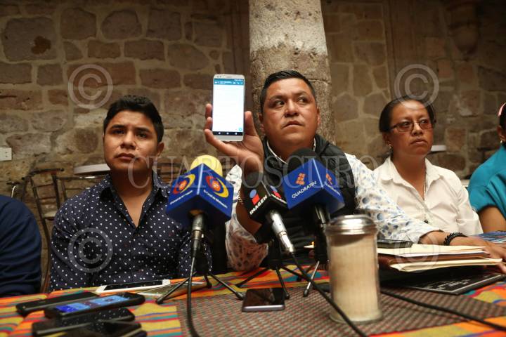 MORELIA, MICHOACÁN, 24MAYO2019.- Regidores del ayuntamiento de Nahuatzen señalan a Mayra Lucía Morales Morales, presidenta municipal sustituta como la autora intelectual de una serie de amenazas de muerte que han recibido por diversas vías “no podemos nosotros tapar…el día de ayer nosotros como integrantes del cabildo recibimos amenazas de muerte y llamadas por no entablar un diálogo con la presidenta municipal a un día de llegar al gobierno”. FOTO: JUAN JOSÉ ESTRADA SERAFÍN /CUARTOSCURO.COM