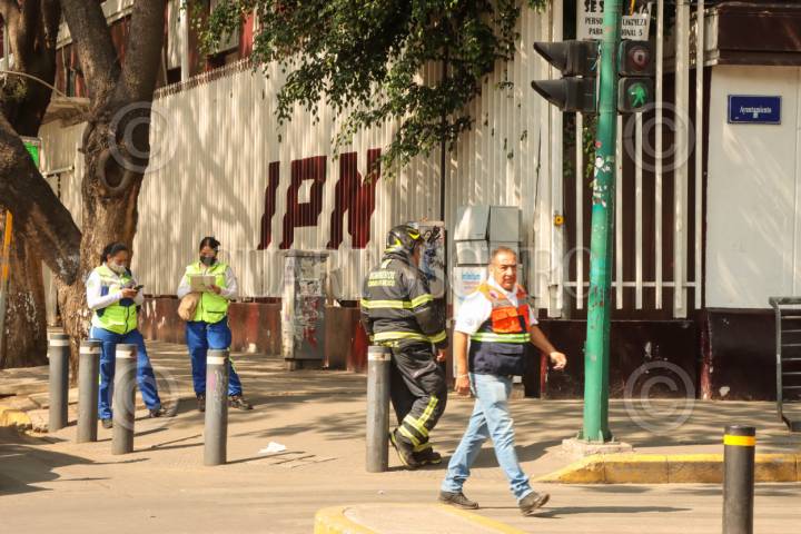 CIUDAD DE MÉXICO, 09MAYO2025.- Amenaza de bomba movilizo los cuerpos de emergencia de la Secretaría de Seguridad Ciudadana en la Vocacional 5 del IPN, ubicada en colonia Juárez alcaldía Cuauhtémoc. Los elementos reportaron que tras una inspección se trató de una falsa alarma. FOTO: ROGELIO MORALES/CUARTOSCURO.COM