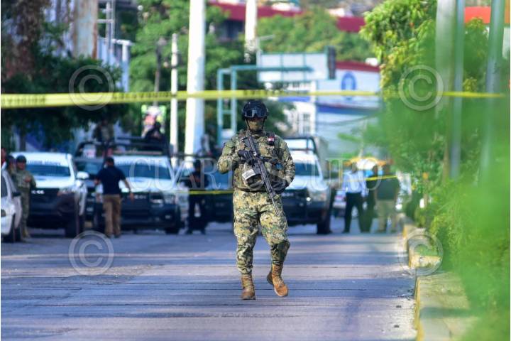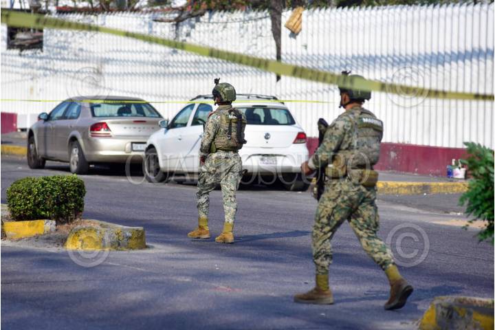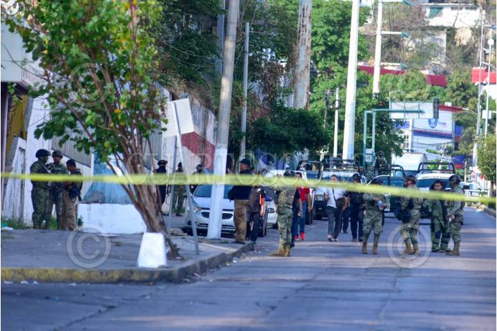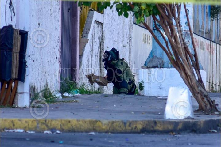 ACAPULCO, GUERRERO, 11MAYO2025.- Agentes de la Marina y el Ejército Mexicano Cerraron el paso de la transitada avenida Ruiz Cortines de Acapulco en esta tarde, en dónde fue dejada una caja con un mensaje donde decían que dentro había un artefacto explosivo, al lugar arriba un agente con equipo especial para desactivar el probable explosivo, sin embargo resultó ser solo una falsa alarma. FOTO: CARLOS ALBERTO CARBAJAL/CUARTOSCURO.COM