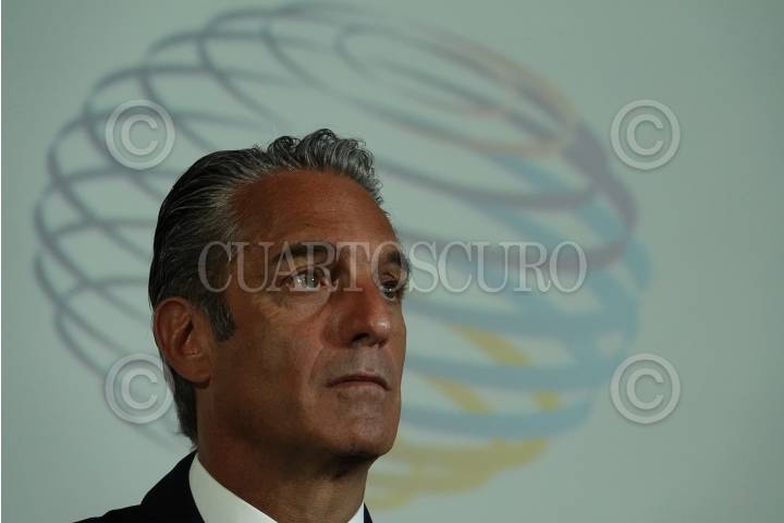 Carlos Slim Domit durante la conferencia de América Móvil en el Museo Soumaya.