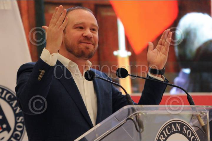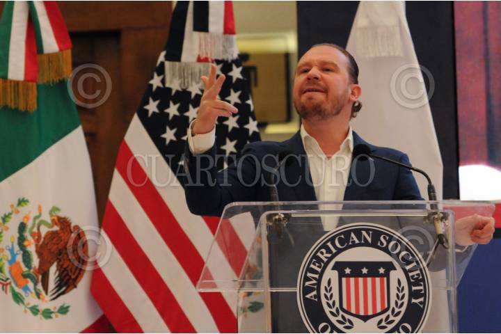 CIUDAD DE MÉXICO, 21FEBRERO2024. - La American Society invitó a los tres candidatos a la jefatura de gobierno para dialogar con ellos, el primero en participar fue Salomón Chertorivski, candidato de MC. FOTO: DANIEL AUGUSTO /CUARTOSCURO.COM