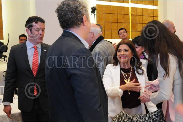 CIUDAD DE MÉXICO, 21FEBRERO2024. - La American Society organizó una reunión con los candidatos a jefatura de gobierno para dialogar con ellos, en la imagen, Clara Brugada saluda a los integrantes de la organización. FOTO: DANIEL AUGUSTO /CUARTOSCURO.COM