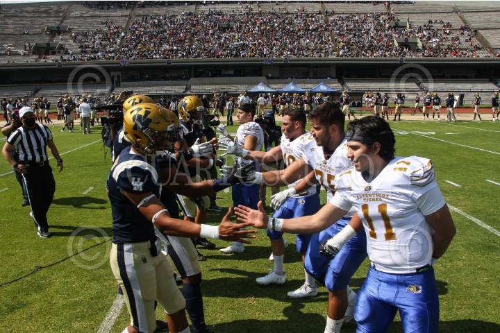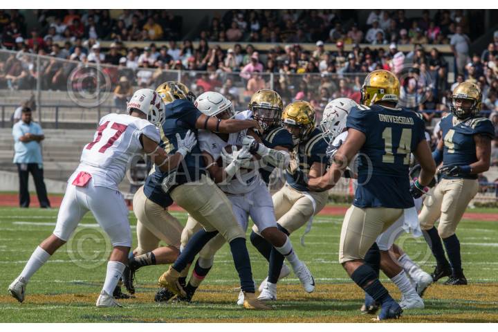 CIUDAD DE MÉXICO, 12OCTUBRE2019.- Los Burros Blancos del Politécnico en calidad de visitantes derrotaron a los Pumas de la UNAM, con un marcador de 51-48 llevándose el clásico de fútbol americano estudiantil y tomando el liderato en la ONEFA. FOTO: ANDREA MURCIA /CUARTOSCURO.COM