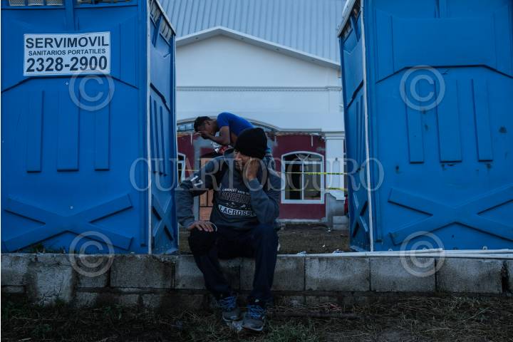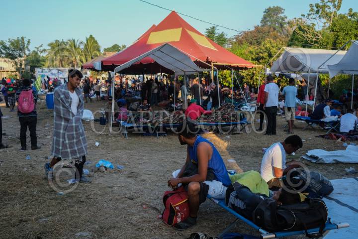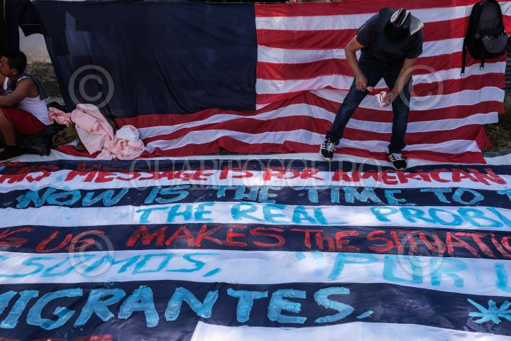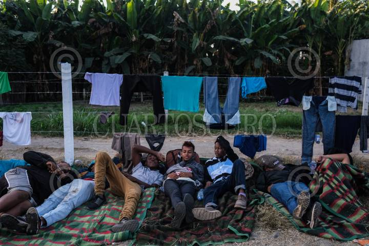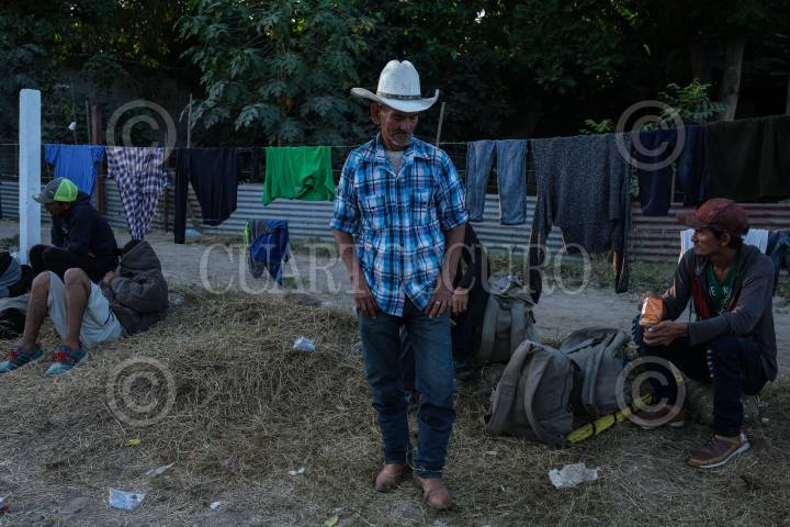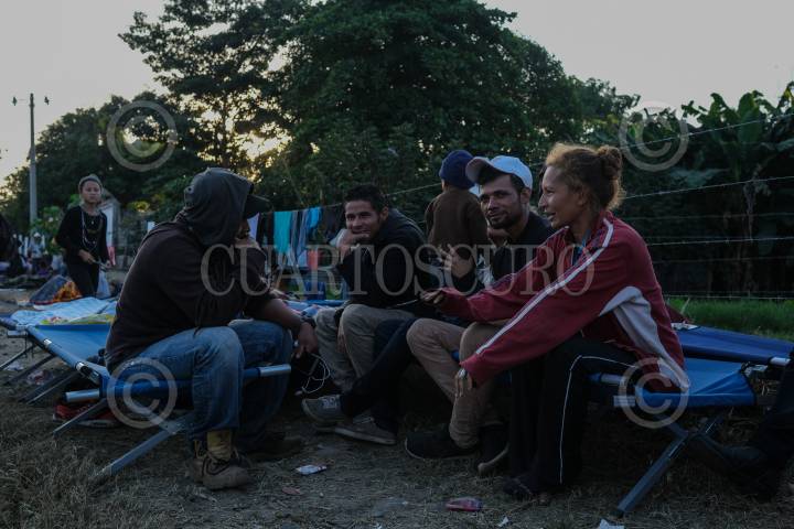 Migrantes aguardan en un albergue provisional para continuar su camino a Estados Unidos.
