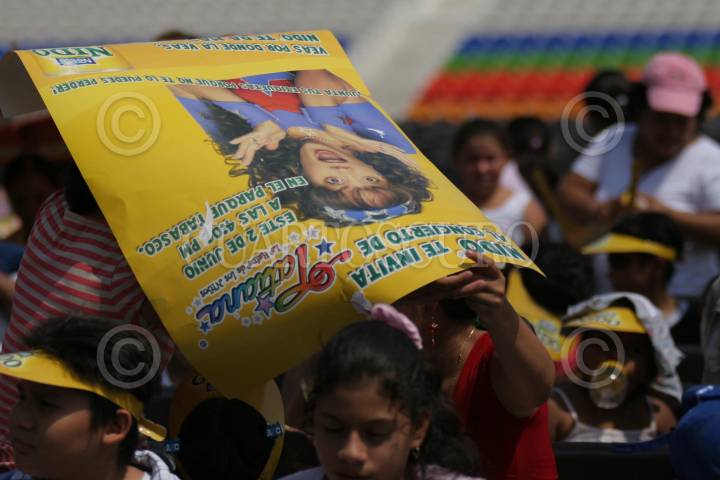 VILLAHERMOSA, TABASCO, 02JUNIO2007.- La gira de un producto lacteo se presento en el teatro del pueblo del parque de Feria. Ahi los niños y padres esperaron por un largo tiempo a La Amiga de los Niños, Tatiana. FOTO: MARCO POLO GUZMÁN HERNÁNDEZ/CUARTOSCURO.COM