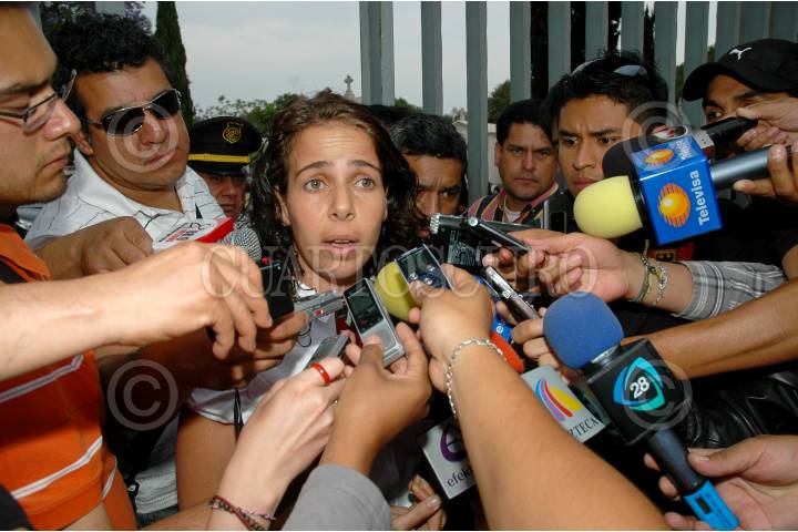 MÉXICO D.F., 04ABRIL2010.- Arlette Farah, hermana de la mama de la niña Paulette Gebara Farah ofrecio una conferencia de prensa a las fueras del panteón Frances previo al arribo del cuerpo de la niña en donde esta noche es velado por familiares y amigos. FOTO: RODOLFO ANGULO/CUARTOSCURO.COM