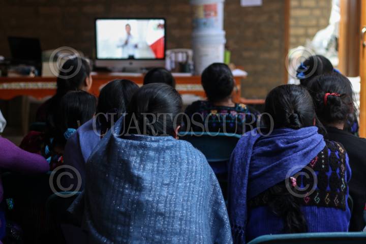 Integrantes de Las Abejas de Acteal durante la conferencia de prensa.