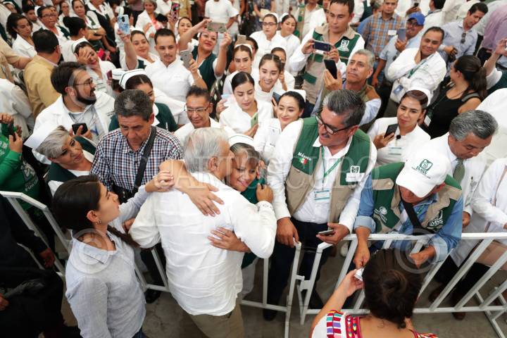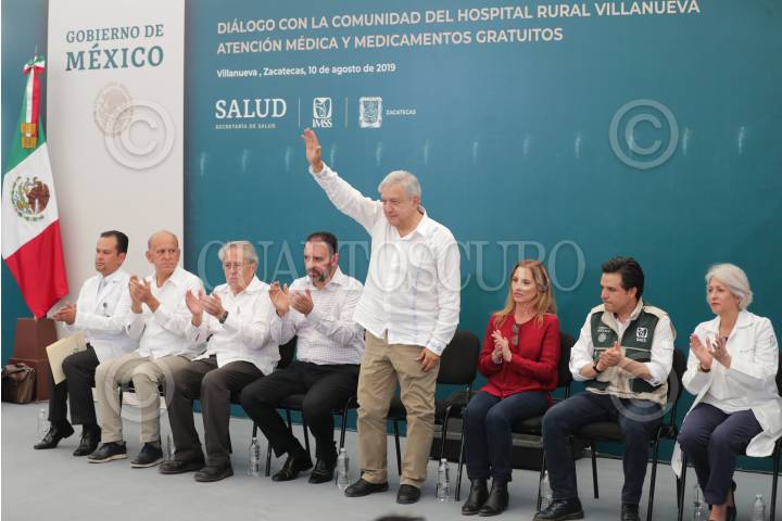 VILLANUEVA, ZACATECAS, 10AGOSTO2019.- Andrés Manuel López Obrador, presidente de México, su esposa la escritora Beatriz Muller durante la visita y diálogo con la Comunidad del Hospital Rural Villanueva. Atención Médica y Medicamentos Gratuitos. Lo acompañan Jorge Carlos Alcocer Varela Secretario de Salud; Zoé Robledo, Director general del IMSS; Luis Antonio Ramírez Pineda, Director General del ISSSTE y Alejandro Tello Cristerna, gobernador de Zacatecas. FOTO: PRESIDENCIA /CUARTOSCURO.COM