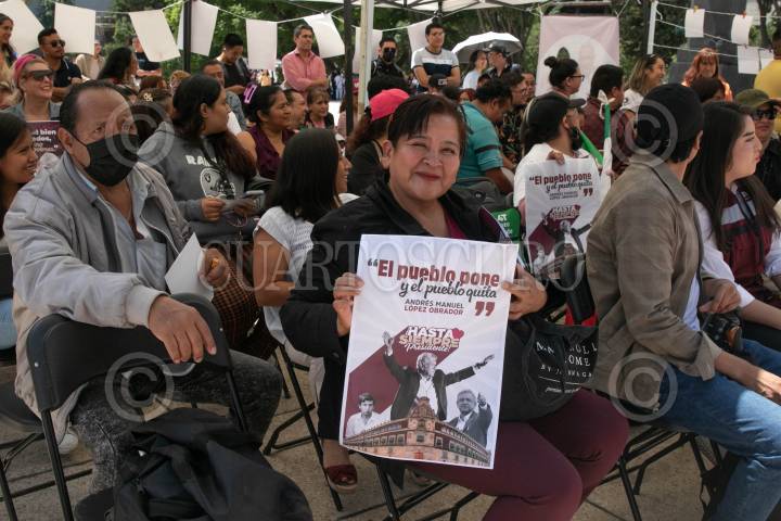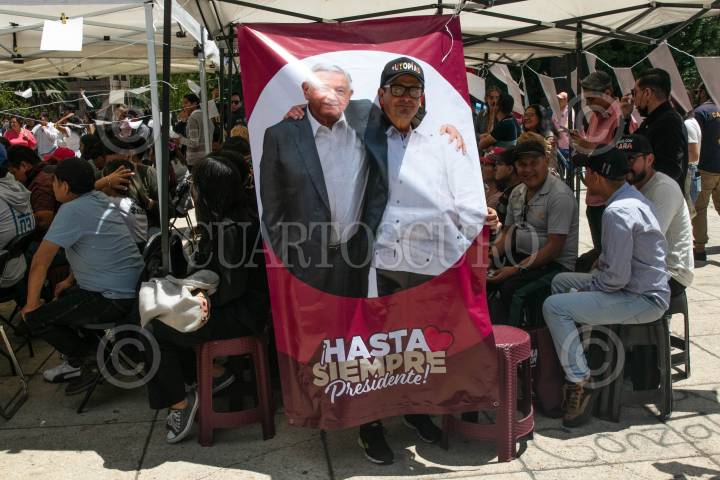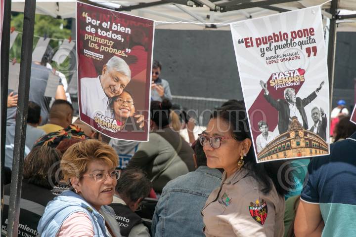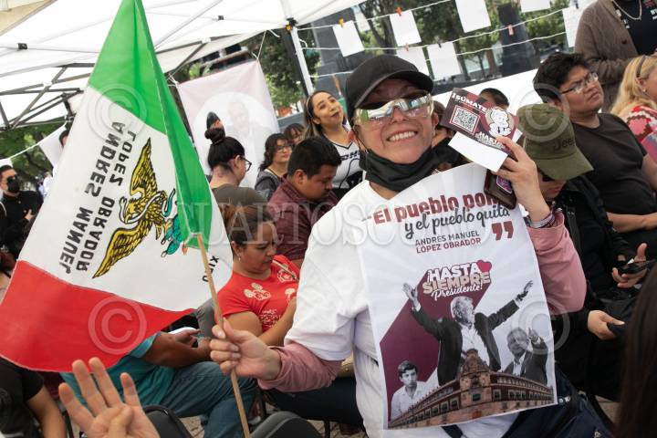 CIUDAD DE MÉXICO, 21JULIO2024.- Seguidores del Presidente de México, Andrés Manuel López Obrador, se congregaron en la explanada del Monumento a la Revolución para demostrarle su afecto esto a unos meses de que concluya su gestión, ahí los presentes lo calificaron como el "mejor presidente" de los últimos tiempos. FOTO: MOISÉS PABLO/CUARTOSCURO.COM