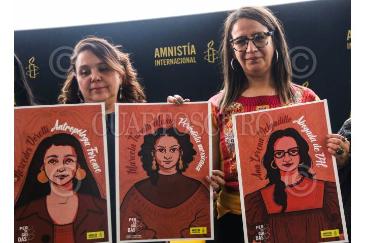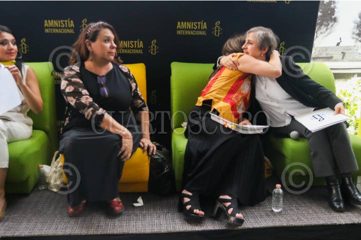 CIUDAD DE MÉXICO. 21MAYO2024.- Amnistía Internacional y la periodista Carmen Aristegui, acompañaron a Ana Lorena Delgadillo, Marcela Durati y Mercedes Doretti; en una persecución por parte del Estado Mexicano y de la FGR debido a su trabajo realizado en las masacres de San Fernando, en Tamaulipas en el 2016; dijeron ser investigadas y espiadas. FOTO: VICTORIA VALTIERRA/CUARTOSCURO.COM