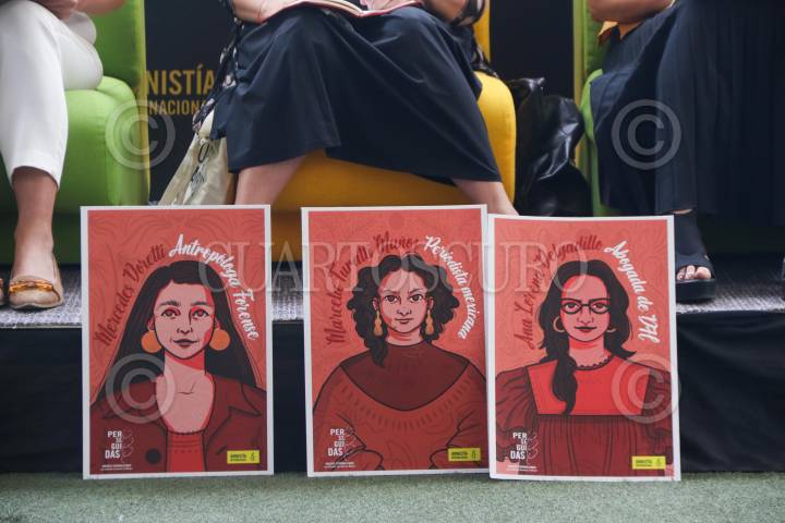 CIUDAD DE MÉXICO, 08JULIO2025.- Las madres buscadoras: Beatriz Zapoteco, Norma Isabel Cruz, Araceli Rodríguez Nava y María Elisabeth Martínez encabezaron el informe “Desaparecer otra vez, violencias y afectaciones que enfrentan las mujeres buscadoras en México” por Amnistía Internacional presenta que se llevó a cabo en el centro Cultural de España. FOTO: ANDREA MURCIA /CUARTOSCURO.COM
