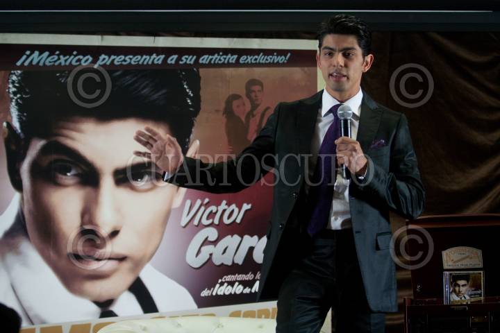 MÉXICO, D.F., 02DICIEMBRE2010.- El cantante mexicano quien saliera del programa la Academia, Victor Garcia, ofreció una conferencia ante los medios de comunicación para dar los pormenores de su nueva producción musical titulada "Amorcito Corazón" la cual le hace un homenaje al cantante e ídolo de los mexicanos, Pedro Infante. FOTO: ENRIQUE ORDÓÑEZ/CUARTOSCURO.COM