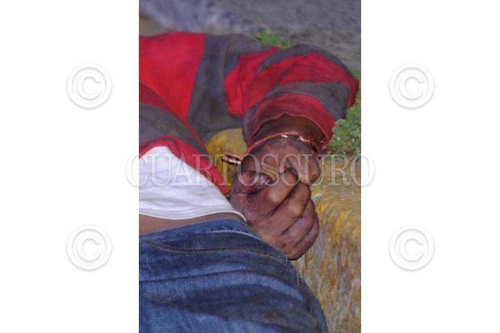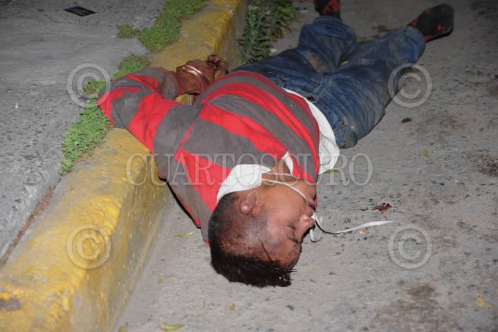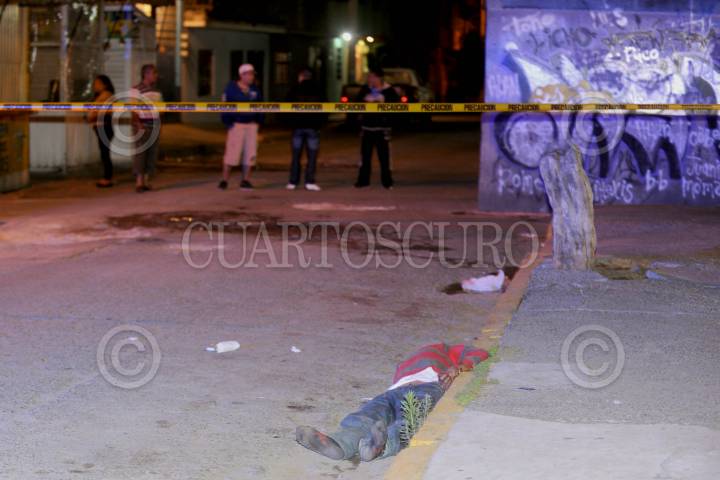 NEZAHUALCÓYOTL, ESTADO DE MÉXICO; 27ABRIL2014.- El cuerpo sin vida de un hombre de aproximadamente 35 años, fue hallado amordazado, amarrado del cuello, manos y pies sobre la calle Vicente Guerrero casi esquina con Bravo de la colonia México en este municipio. El cadáver presentaba impactos de arma de fuego en el cráneo y al parecer fue tirado en este lugar. FOTO: LUIS CARBAYO /CUARTOSCURO.COM