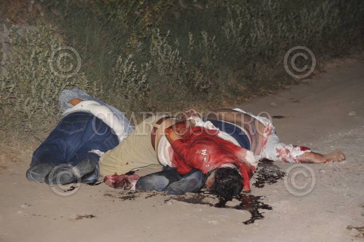 TLALNEPANTLA, EDOMEX, 15AGOSTO2015.- Los cuerpos de tres hombres sin vida, fueron encontrados sobre la calle Flor de Liz en la colonia San Pedro Barrientos, Los cadáveres mostraban huellas de tortura e impactos de arma de fuego, además de estar Amarrados con vendas de los ojos a la cintura. El lugar, fue acordonado por elementos de la policía Municipal de este municipio. FOTO: LUIS CARBAYO /CUARTOSCURO.COM