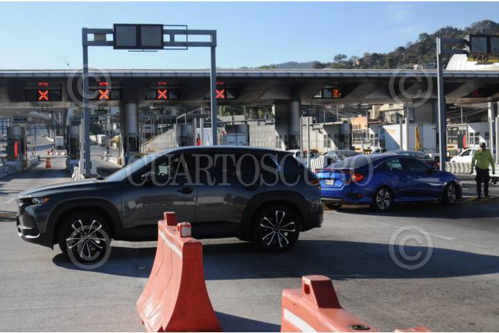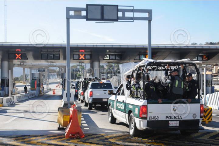 CIUDAD DE MÉXICO, 15FEBRERO2024. - Ante el bloqueo que mantienen los integrantes de AMOTAC a la altura del km 35 de la carretera México - Cuernavaca, la caseta de dicho tramo se mantiene cerrada y los policías de tránsito los desvían hacia la carretera libre. FOTO: DANIEL AUGUSTO /CUARTOSCURO.COM
