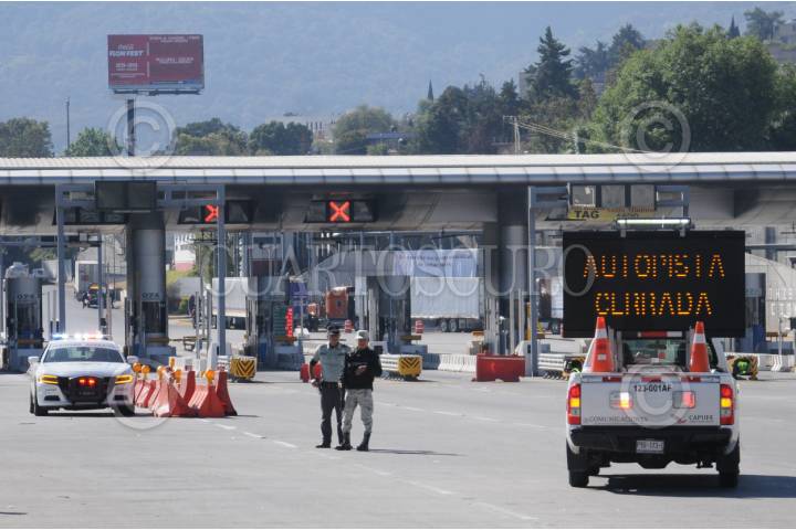 CIUDAD DE MÉXICO, 15FEBRERO2024.- La autopista México - Cuernavaca se encuentra cerrada a la altura del km 35 por integrantes de la AMOTAC, autoridades de Capufe mantienen cerrado el acceso y desvían a los vehículos. FOTO: DANIEL AUGUSTO /CUARTOSCURO.COM