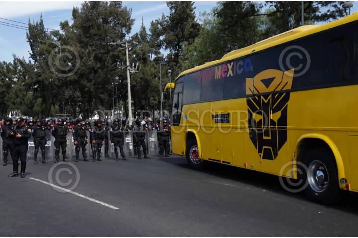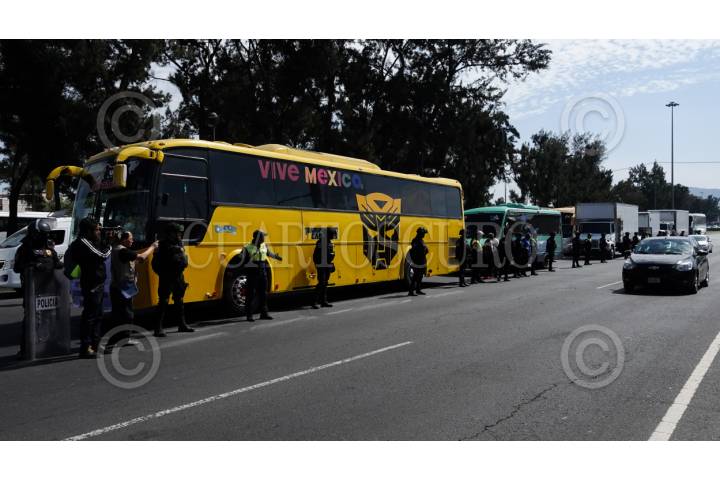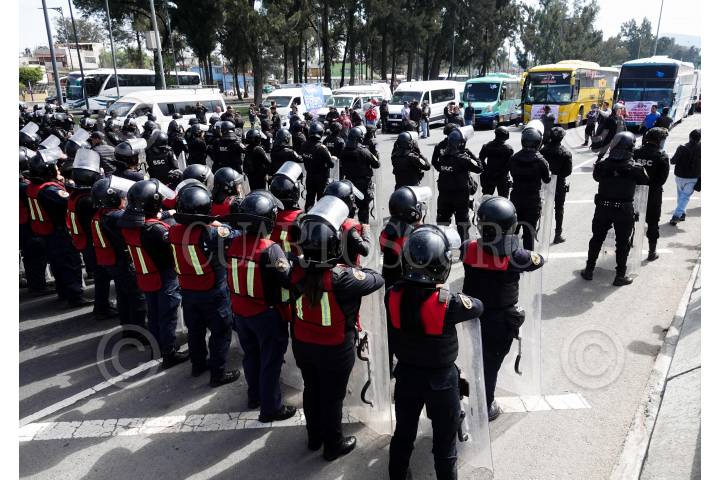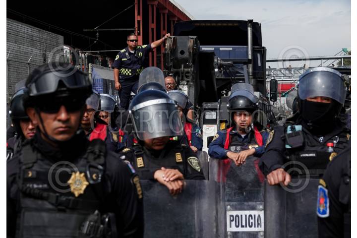 CIUDAD DE MÉXICO, 15FEBRERO2024. - Policías de la capital con equipo antimotines se dirigen al punto de la manifestación en el km 35. FOTO: DANIEL AUGUSTO /CUARTOSCURO.COM