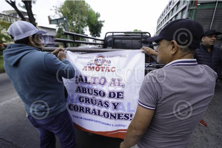 CIUDAD DE MÉXICO, 15FEBRERO2024. - Transportistas integrantes de AMOTAC se manifestaron esta mañana exigiendo mayor seguridad. FOTO: DANIEL AUGUSTO /CUARTOSCURO.COM