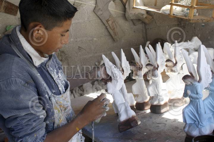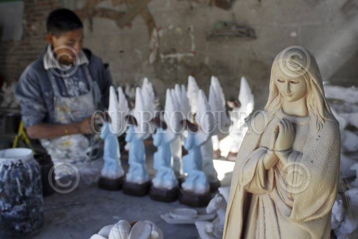AMOZOC, PUEBLA, 23DICIEMBRE2013.- Artesanos del municipio de Amozoc realizan figuras de yeso y resina para adornar los tradicionales nacimientos de navidad. Durante todo el año familias enteras dedican al menos 10 horas diarias para la fabricación de estos elementos decorativos. Esta actividad es una de las principales actividades económicas de la región; al mismo tiempo continúan con la tradición hereditaria. FOTO: HILDA RÍOS /CUARTOSCURO.COM