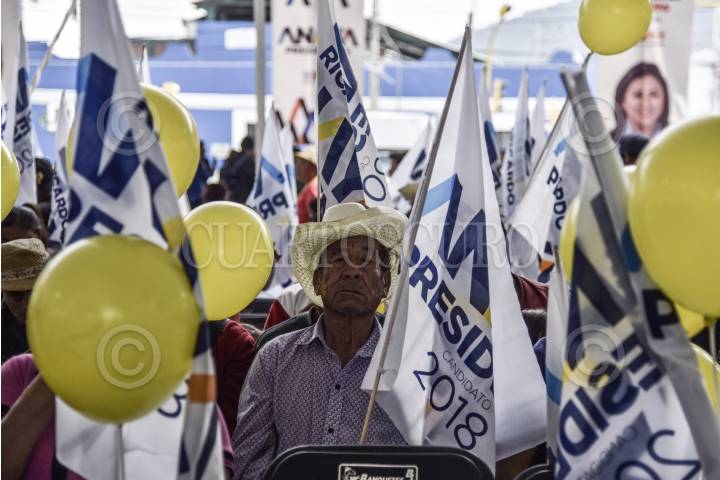 AMOZOC, PUEBLA, 05ABRIL2018.- Simpatizantes del candidato a la presidencia, Ricardo Anaya, se reunieron en la explanada principal de Amozoc, para escuchar las propuestas de campaña del candidato panista. FOTO: MARIO JASSO /CUARTOSCURO.COM