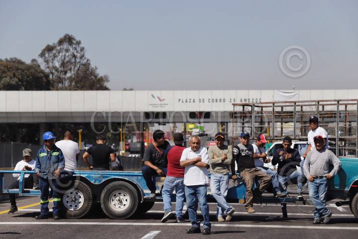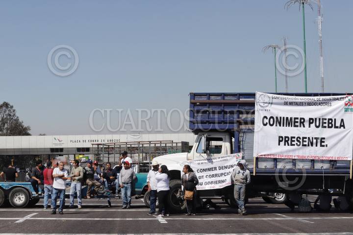 Integrantes de CONIMER bloquean caseta de Amozoc