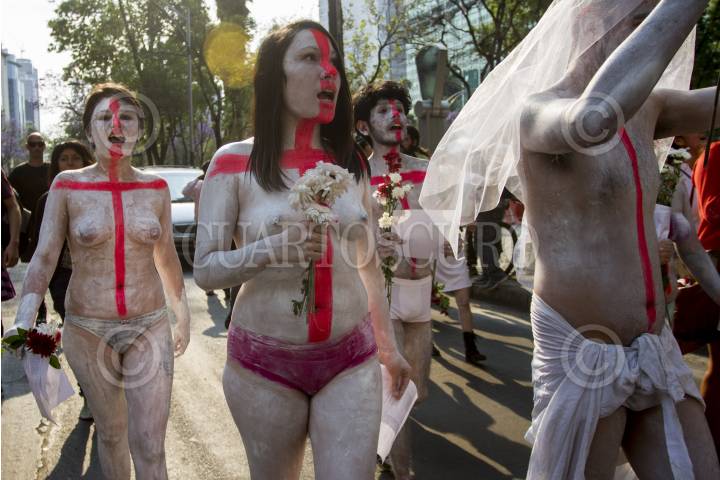 MÉXICO, D.F., 08MARZO2015.- El denominado Bloque Rosa realizó una manifestación sobre paseo de la Reforma por los derechos femeninos, en el marco del día de la Mujer. FOTO: ISAAC ESQUIVEL /CUARTOSCURO.COM