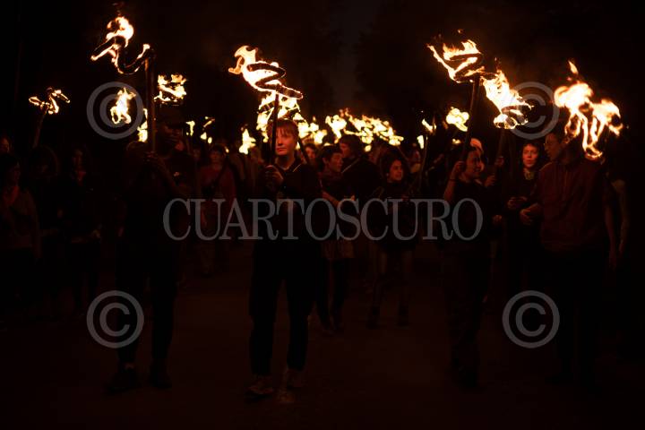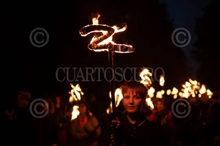 MÉXICO, D.F., 01JULIO2013.- Tras de varias horas un grupo de jóvenes Anarquistas, luego de realizar una marcha del Ángel de la Independencia a la Torre de PEMEX y de regresó, culminaron en la Plancha del Zócalo Capitalino, esto acompañado de un fuerte dispositivo de seguridad que implemento la Secretaria de Seguridad del Distrito Federal. FOTO: GUILLERMO PEREA /CUARTOSCURO.COM