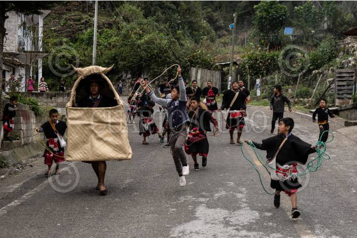 Los niños recorren las calles del pueblo intentando atrapar al Toro elaborado con petate.