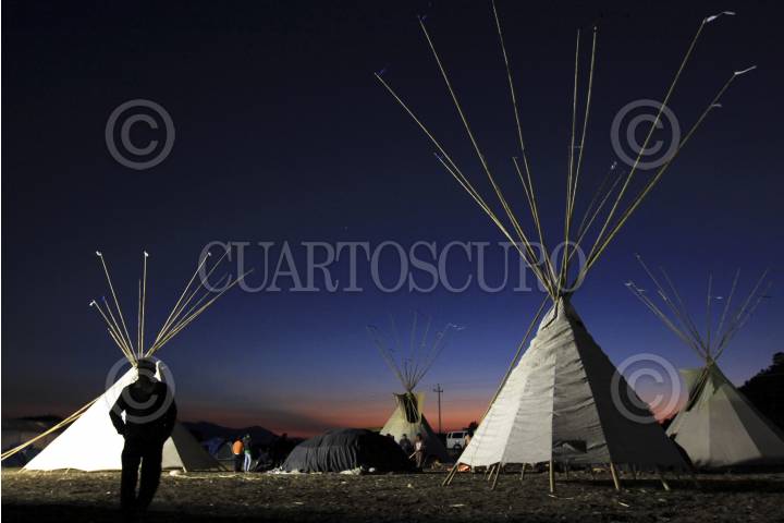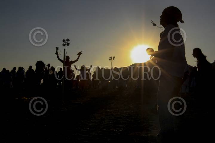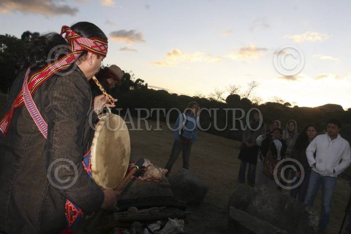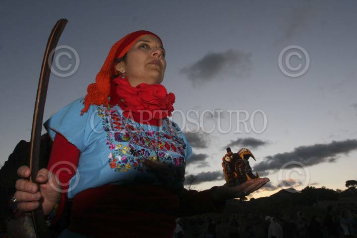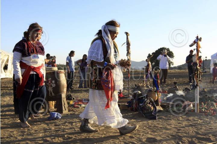 TEPEYAHUALCO, PUEBLA, 19DICIEMBRE2012.- Inauguración del II Encuentro Internacional de Sabiduría Ancestral que ha sido denominado del Fuego Nuevo por el inicio espiritual de una nueva era a partir del viernes 21 de diciembre. Representantes de 52 países dialogan cuál es la nueva etapa a la que la humanidad debe aspirar a través del intercambio de ideas y rituales tradicionales llevados a cabo en la zona arqueológica de Cantona. FOTO: HILDA RÍOS /CUARTOSCURO.COM