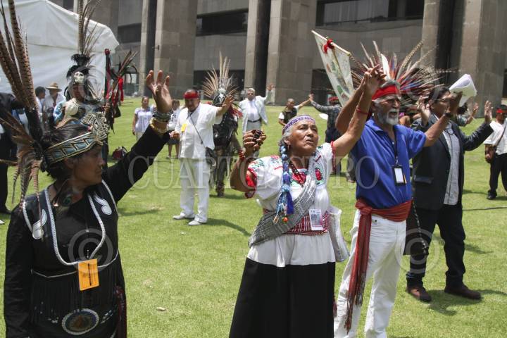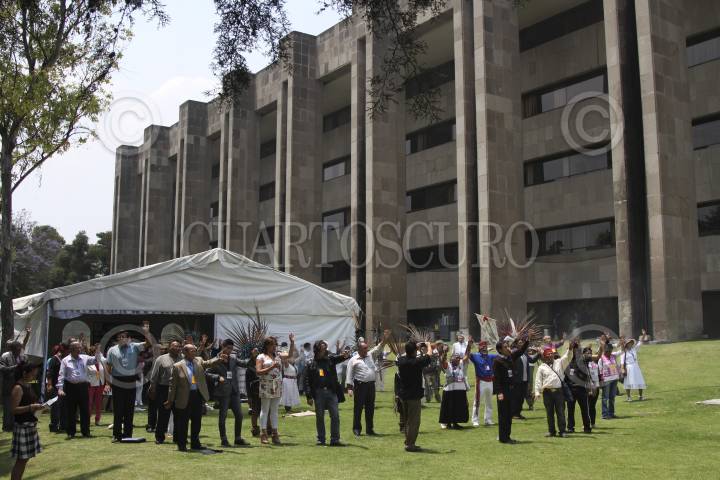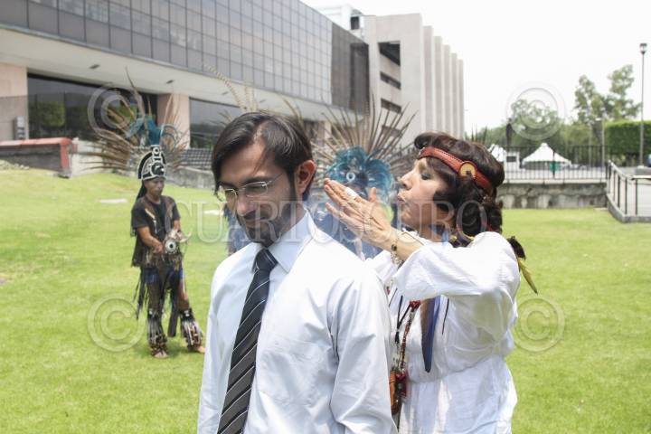 MÉXICO, D.F., 22ABRIL2015.- Con una limpia a trabajadores de la Cámara de Diputados y una ceremonia ancestral concluyó el Parlamento de Sabiduría Ancestral Tradición y Conocimiento Para la Vida realizado en el patio trasero del Congreso de la Unión. FOTO: SAÚL LÓPEZ /CUARTOSCURO.COM