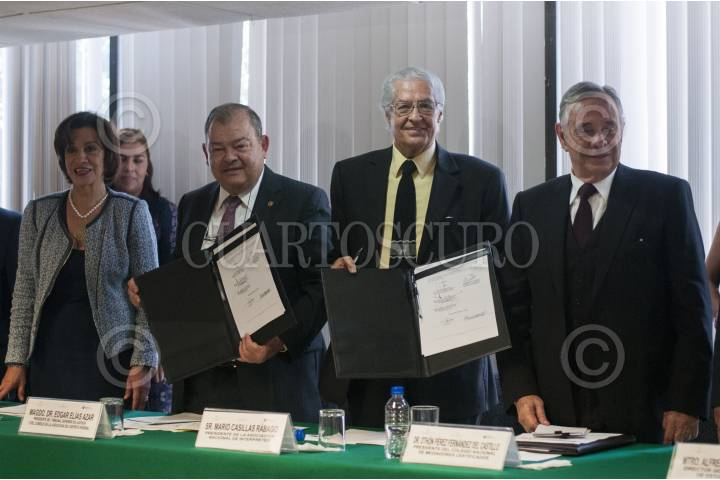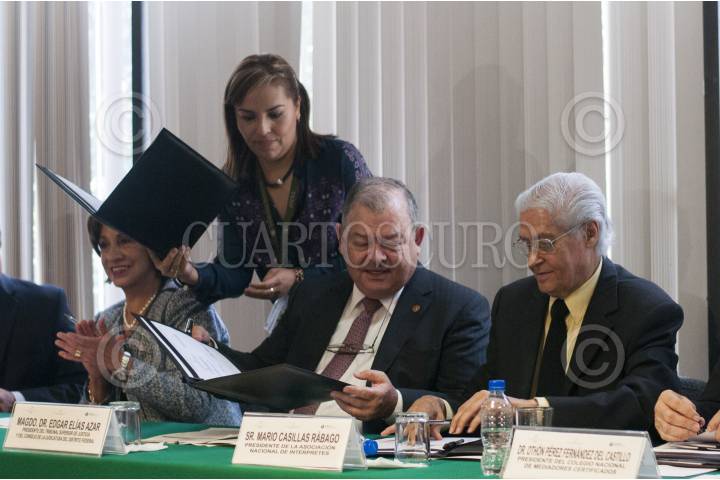 MÉXICO, D.F., 06AGOSTO2015.- El actor Mario Casillas Rábago, presidente de la Asociación Nacional de Interpretes (ANDI) y el magistrado Edgar Elías Azar, presidente del Tribunal Superior de Justicia del Distrito Federal, durante una firma de convenio. FOTO: DIEGO SIMÓN SÁNCHEZ /CUARTOSCURO.COM