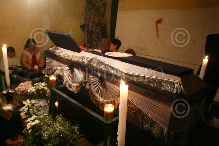 ANGANGUEO, MICHOACÀN, 05FEBRERO2010.- Velan el cuerpo de Denin Enrique Garcia de 10 años de edad, uno de los niños que fue sepultado por el desgajamiento de un cerro en la colonia Las Palmas en Angangueo. La familia tuvo que pedir prestada una casa para velar el cuerpo. Los familiares inconsolables comentaron que tiene fe de encontrar los cuerpos de la hermana de Denin y a su abuelo que aun siguen desaparecidos entre el alud. FOTO: SAÚL LÓPEZ ESCORCIA/CUARTOSCURO.COM