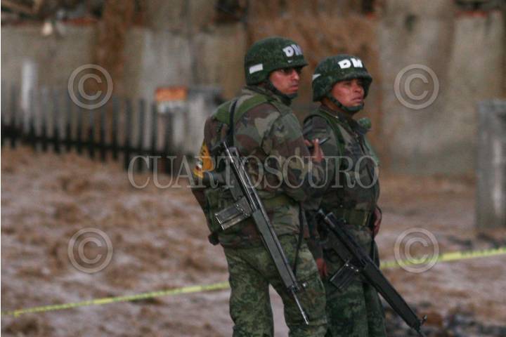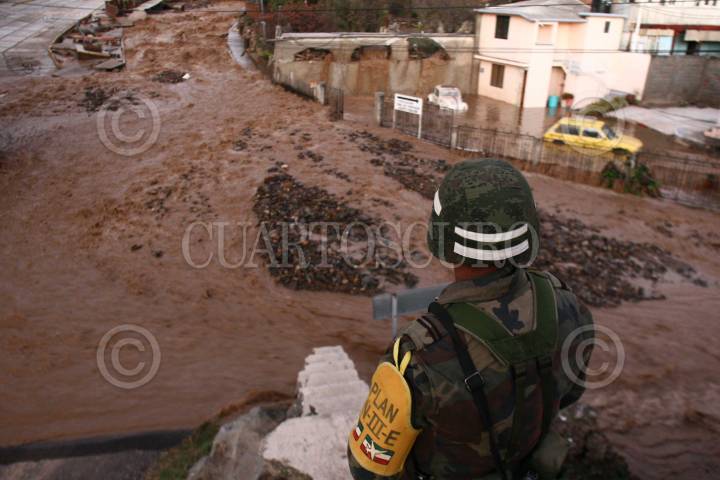 ANGANGUEO, MICHOACÀN, 06FEBRERO2010.- Elementos del ejercito mexicano mantienen cercado en centro de Angangueo debido a la destruccion que causo el desbordamiento de los rios. FOTO: SAÚL LÓPEZ ESCORCIA/CUARTOSCURO.COM