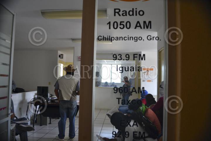CHILPANCINGO , GUERRERO, 14OCTUBRE2014.- Estudiantes de la Escuela Normal Rural de Ayotzinapa tomaron las instalaciones de la radiodifusora ABC radio para emitir un comunicado sobre las agresiones recibidas por los trabajadores del palacio de gobierno de Chilpancingo, quienes señalan los agredieron a pedradas. Así mismo, exigen la aparición con vida de los 43 estudiantes desaparecidos en Iguala el pasado 26 de Septiembre. FOTO: JOSÉ I. HERNÁNDEZ /CUARTOSCURO.COM
