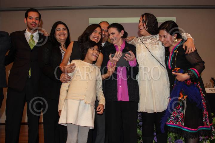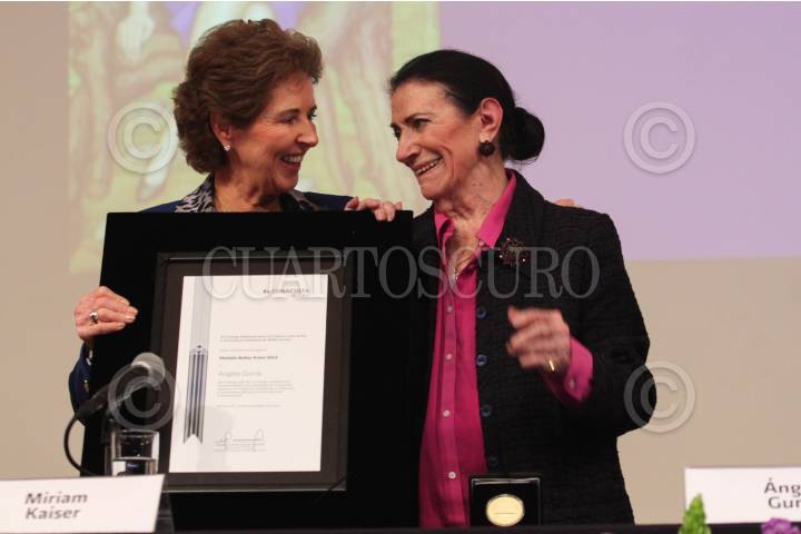 MÉXICO, D.F., 14NOVIEMBRE2015.- La escultora Ángela Gurria fue galardonada con la Medalla Bellas Artes, que es otorgada a los artistas cuya trayectoria es trascendental, en la Sala Manuel M. Ponce. En compañía de su familia y amigos, la escultora recibió la presea de manos de María Cristina García Cepeda, titular del Instituto Nacional de Bellas Artes. FOTO: MARÍA JOSÉ MARTÍNEZ /CUARTOSCURO.COM