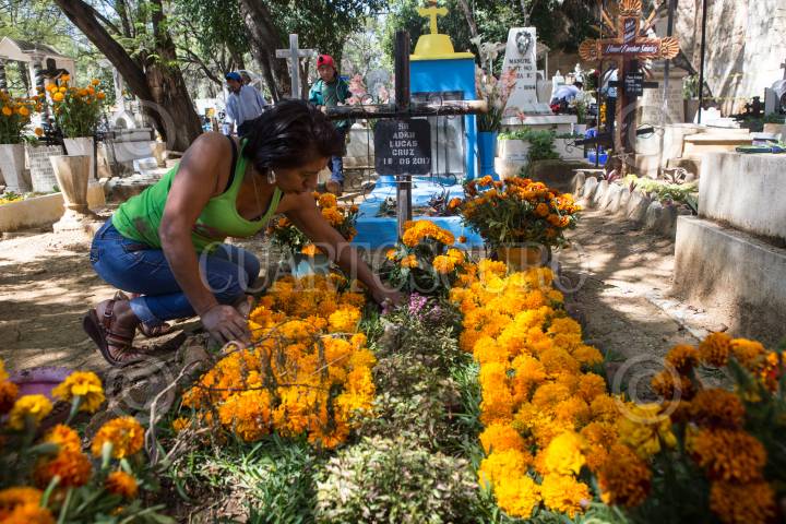 OAXACA DE JUÁREZ, OAXACA, 01NOVIEMBRE2017.- Con motivo del tradicional Día de Muertos, oaxaqueños asistieron la mañana de este miércoles al panteón de San Miguel para visitar las tumbas de sus "angelitos", niños y jóvenes menores de edad que han fallecido. FOTO: TERCERO DÍAZ /CUARTOSCURO.COM