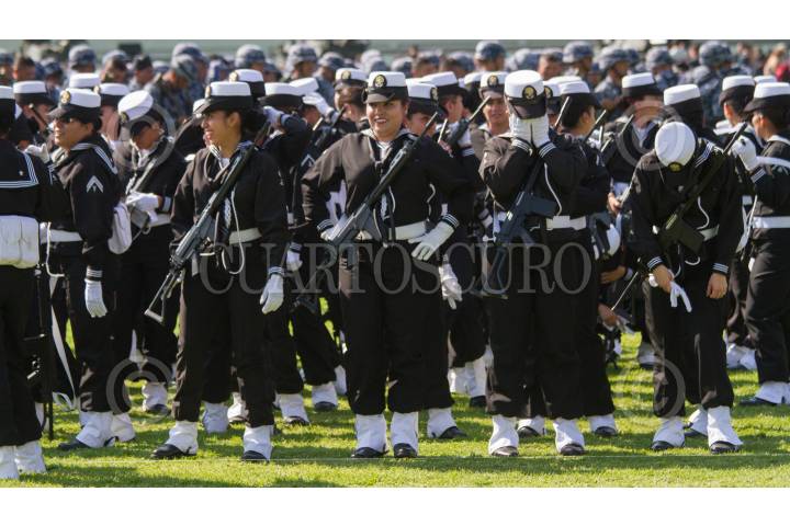 CIUDAD DE MÉXICO, 20NOVIEMBRE2018.- Soldados de la Marina rompen filas al finalizar la ceremonia del 108 aniversario de la Revolución Mexicana, realizado en Campo Marte. FOTO: MOISÉS PABLO /CUARTOSCURO.COM