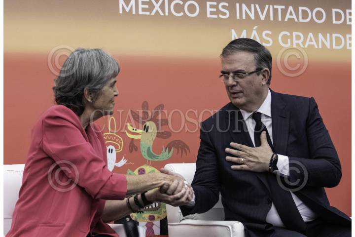 Marcelo Ebrard Casaubon, secretario de Relaciones Exteriores y María Novaro, directora Instituto Mexicano de Cine, durante conferencia de prensa para dar más detalles de México como invitado de honor en el festival ANNECY.