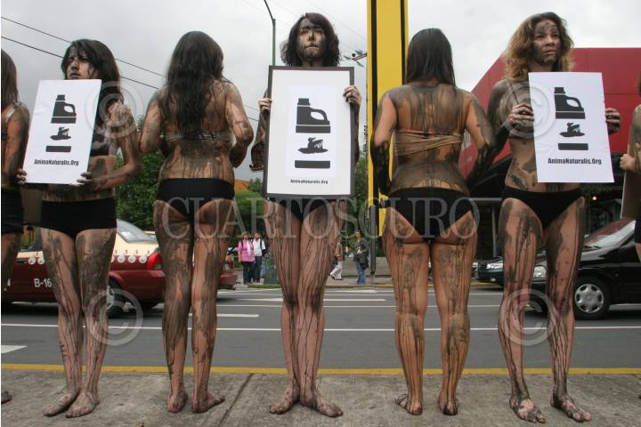 MÉXICO, D.F., 01JULIO2010.- Integrantes de la Organización AnimaNaturalis, protestaron semidesnudas a un costado de la Embajada de Canadá en el día de Canadá contra la matanza de cachorros de focas que han cobrado millones de vidas de estos animales. FOTO: ENRIQUE ORDÓÑEZ/CUARTOSCURO.COM