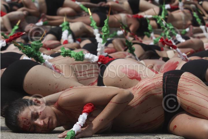MÉXICO, D.F., 05FEBRERO2012.- Integrantes de la Organización AnimaNaturalis, se manifestaron en la glorieta del Ángel de la Independencia en contra de las corridas de toros en el país. FOTO: ENRIQUE ORDÓÑEZ/CUARTOSCURO.COM